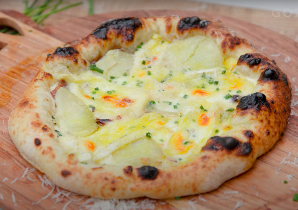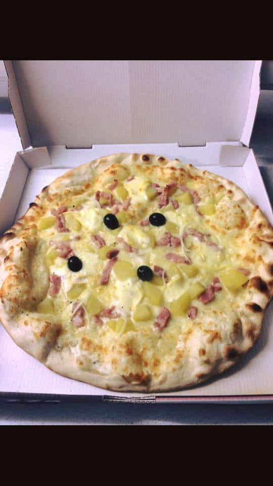 Fresh Cream, Bacon, Potato, Reblochon, Onion, Mozzarella, Olive, Oregano