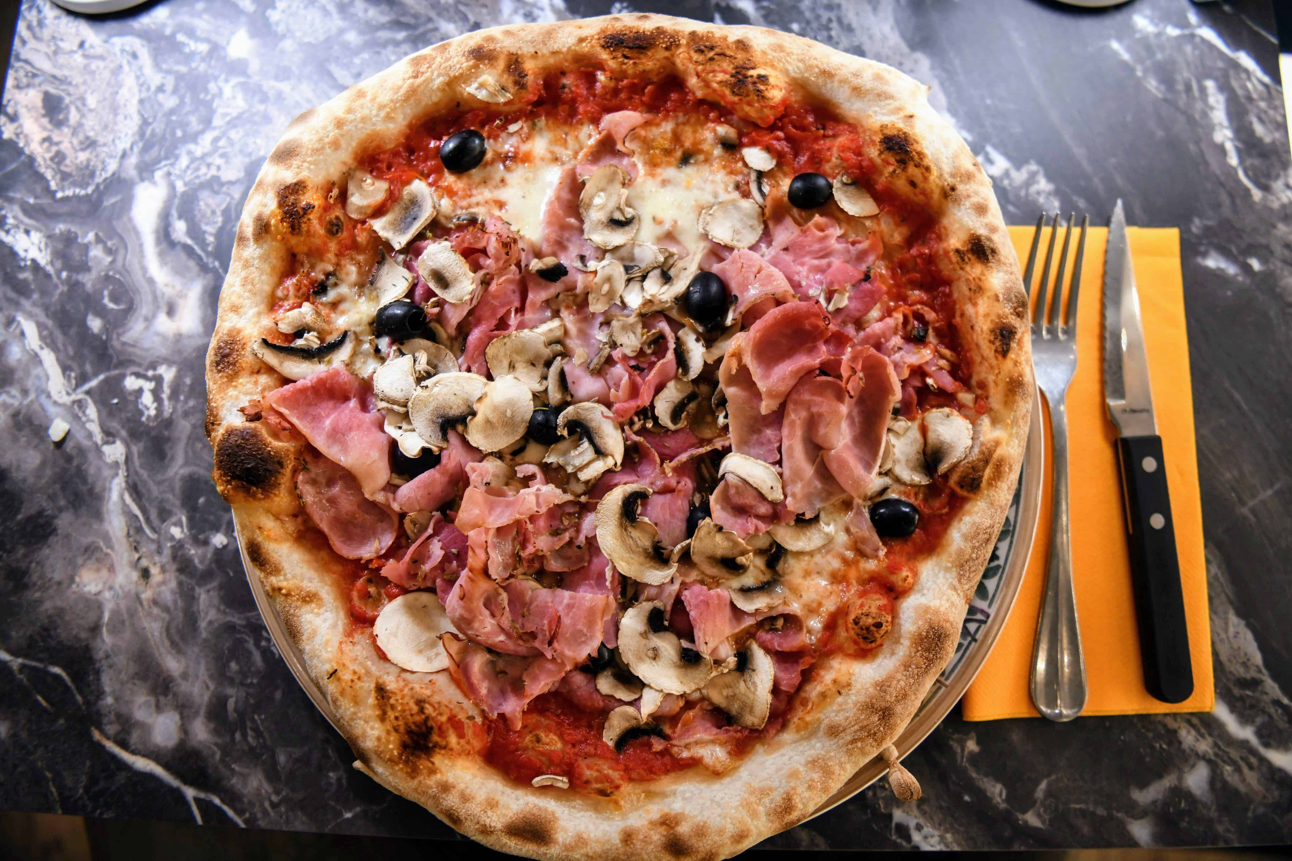 Tomato Sauce, Ham, Mushroom, Mozzarella, Olive, Oregano
