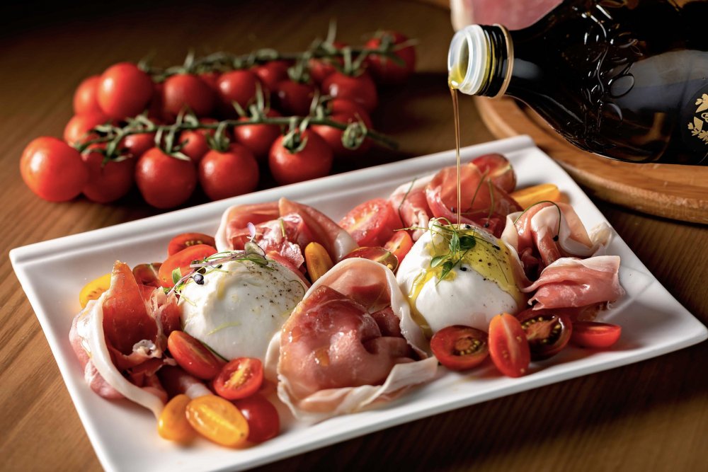 Burrata (4.5oz), Cherry Tomatoes, Meats Cold Cuts, Marinated Veggies