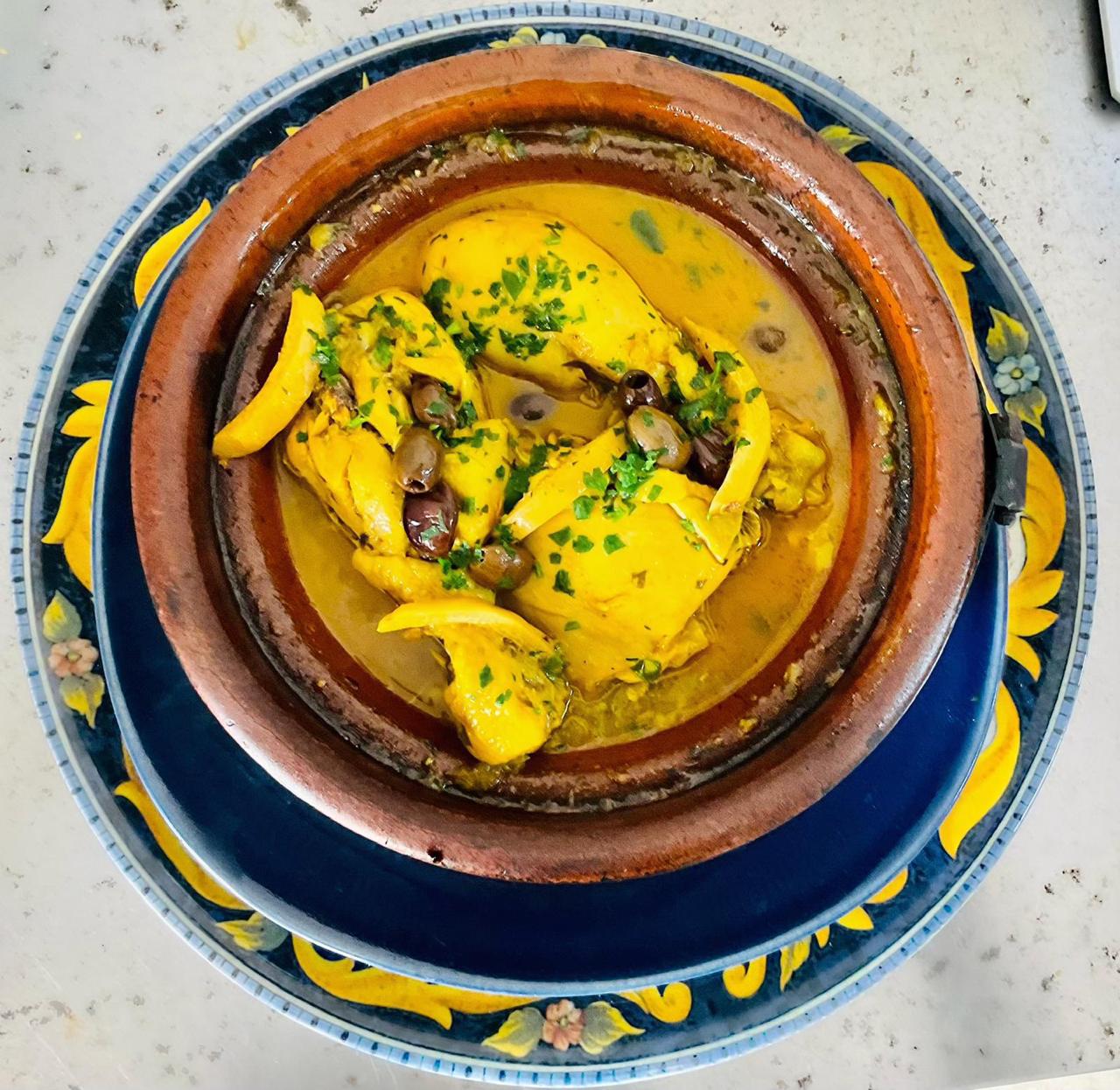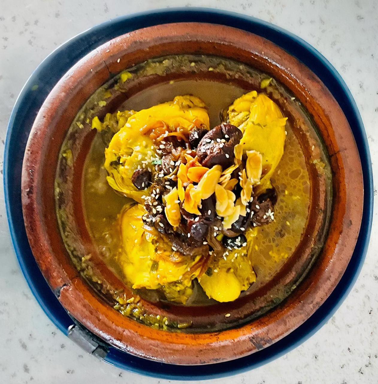 This homemade vegetarian dish consist of grilled chopped eggplants mixed into homemade tomato coulis and chickpeas