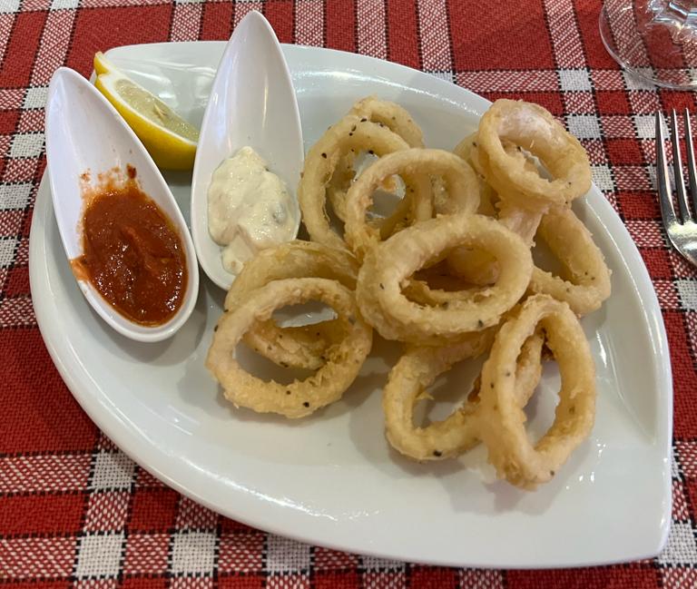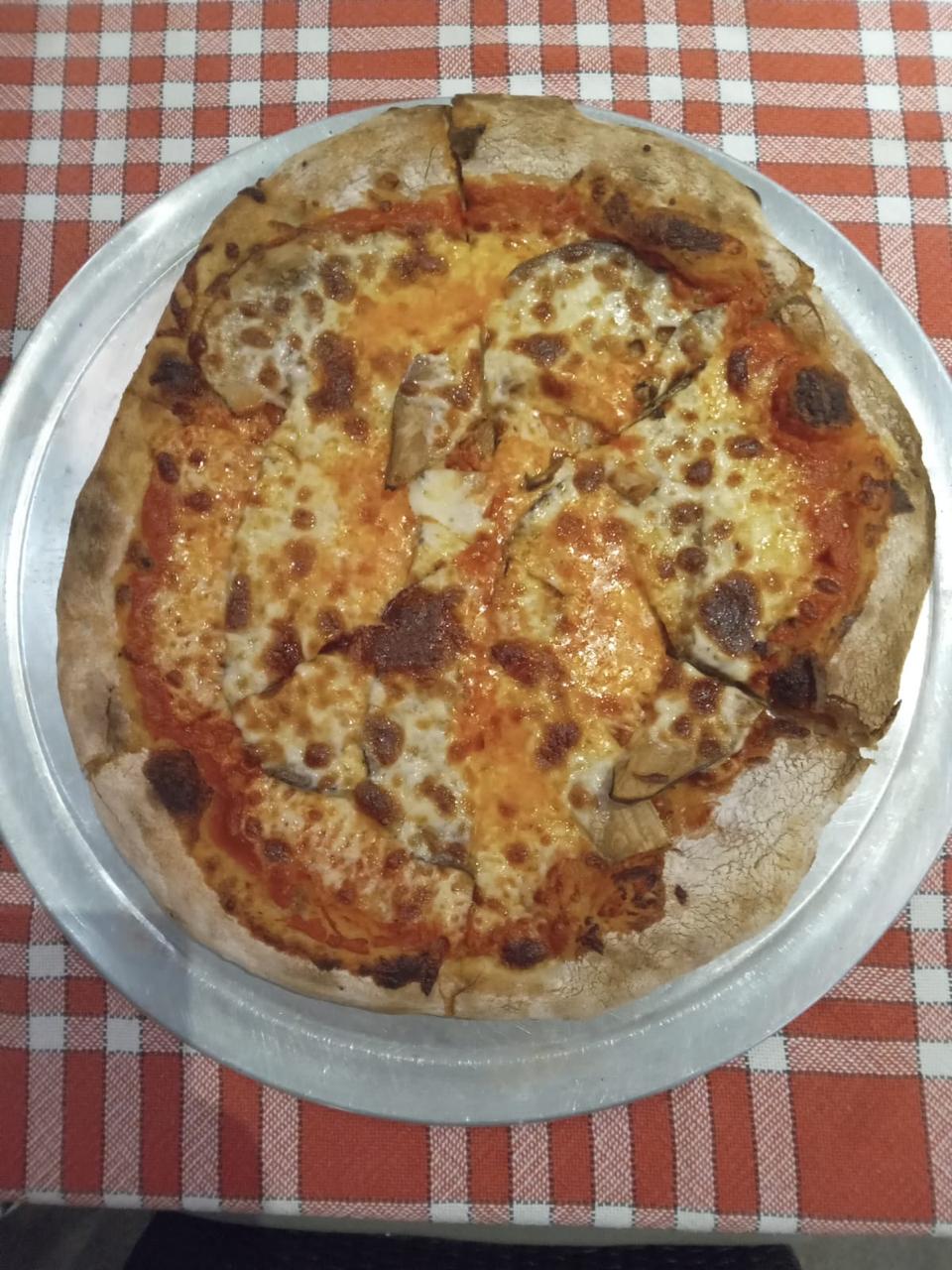 Marinara sauce, Mozzarella, Anchovies, Eggplant, Onions