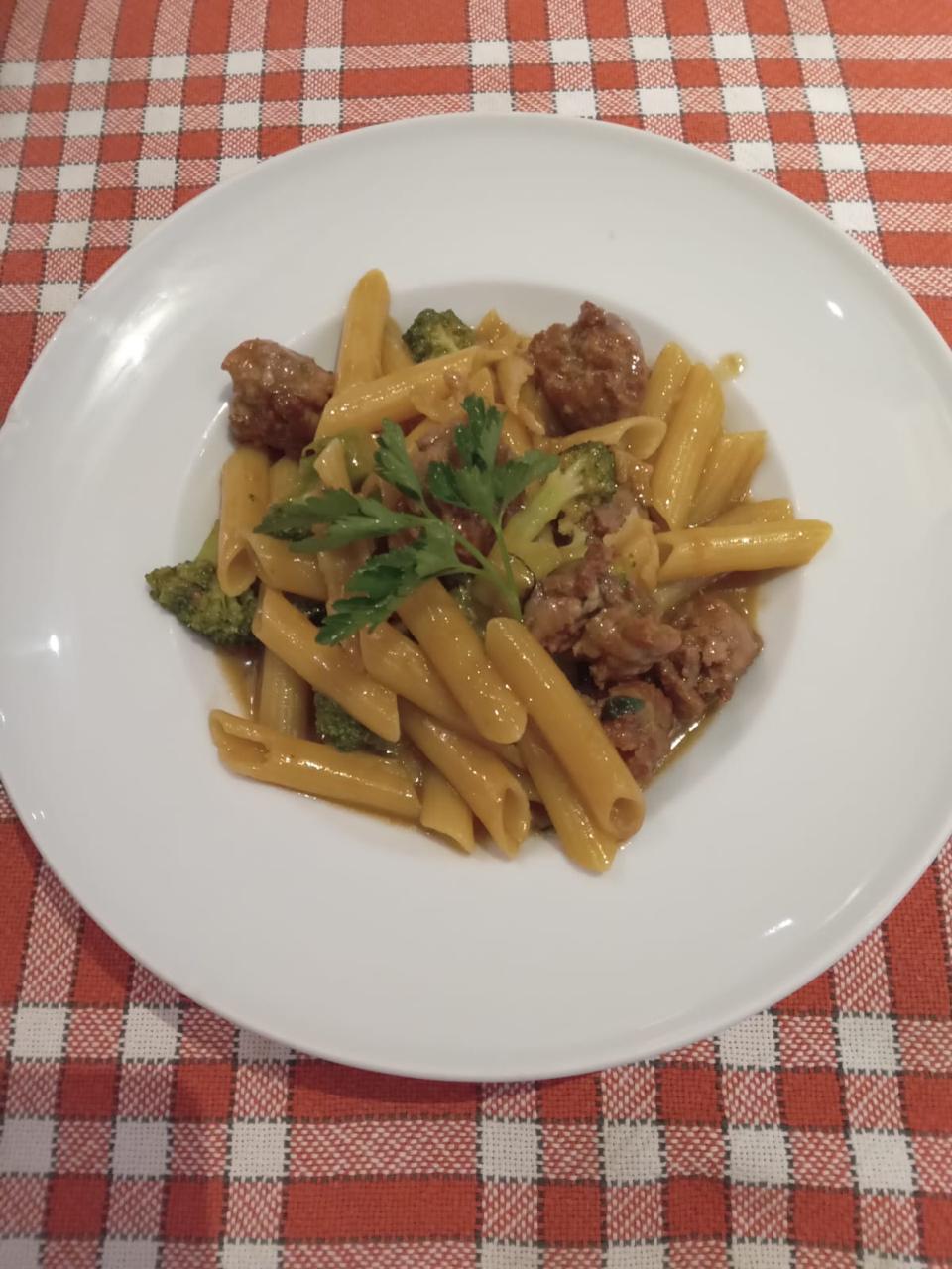Italian sausage cooked in gravy with broccoli, topped with Parmesan cheese