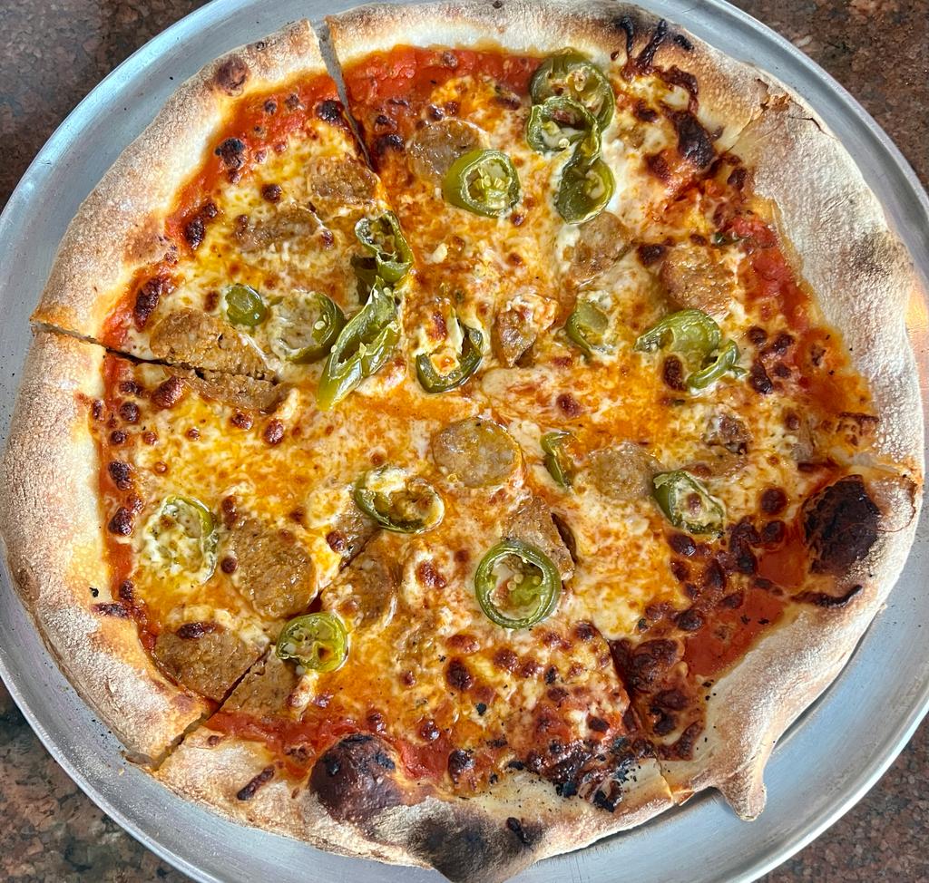 Marinara sauce, Mozzarella, Jalapinos, Spicy italian sausage,