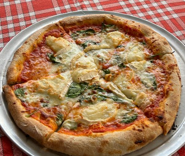 Marinara sauce, Mozzarella, Fresh spinachs, Goat cheese, Honey