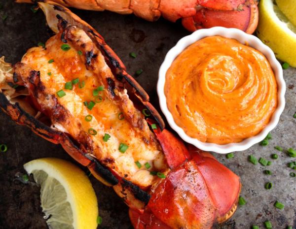 Garlic & Herb Butter, Grilled Asparagus, Salad