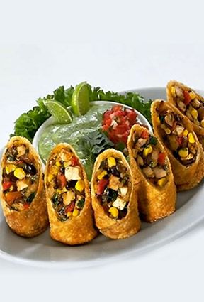 Crispy rolls with Black Beans, Corn, Peppers, Spinach & Pepper Jack Cheese