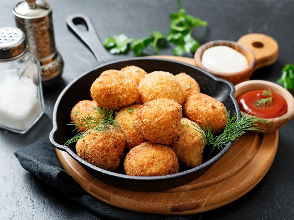Stuffed Gorgonzola, Oregano Crumble, Mix salad