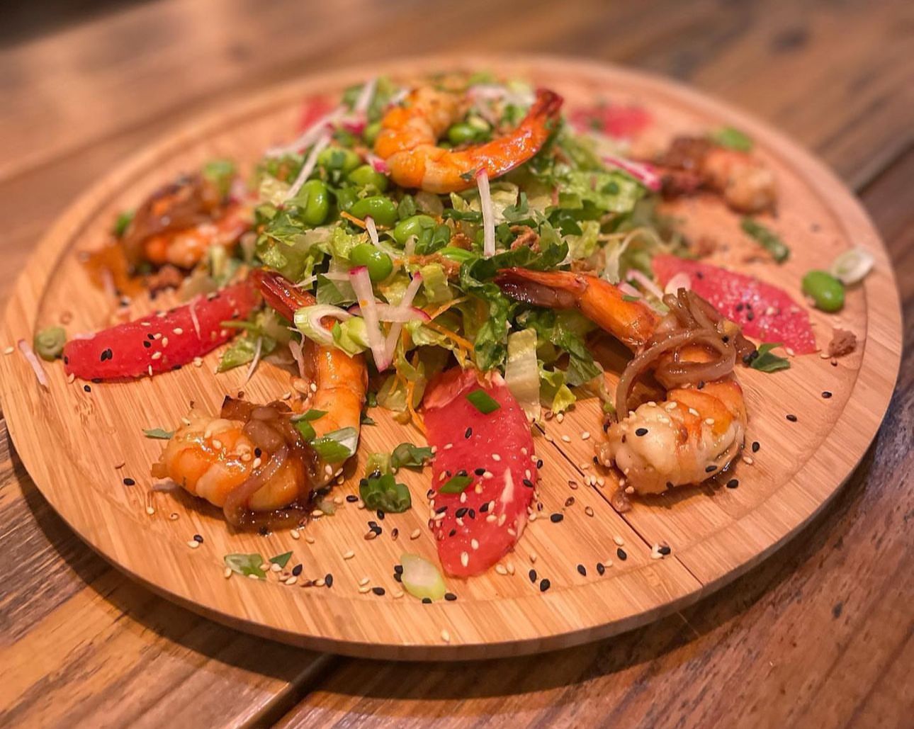 Mango, Avocado, Red onions, Mint, Cilantro, Lemon juice, Wakame, Salad, Sweet potato fries