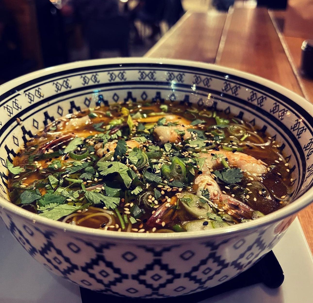 Vermicelli, Spicy lemongrass broth, Bok choy, Shiitake, Kaffir leaves, Chives, Coriander