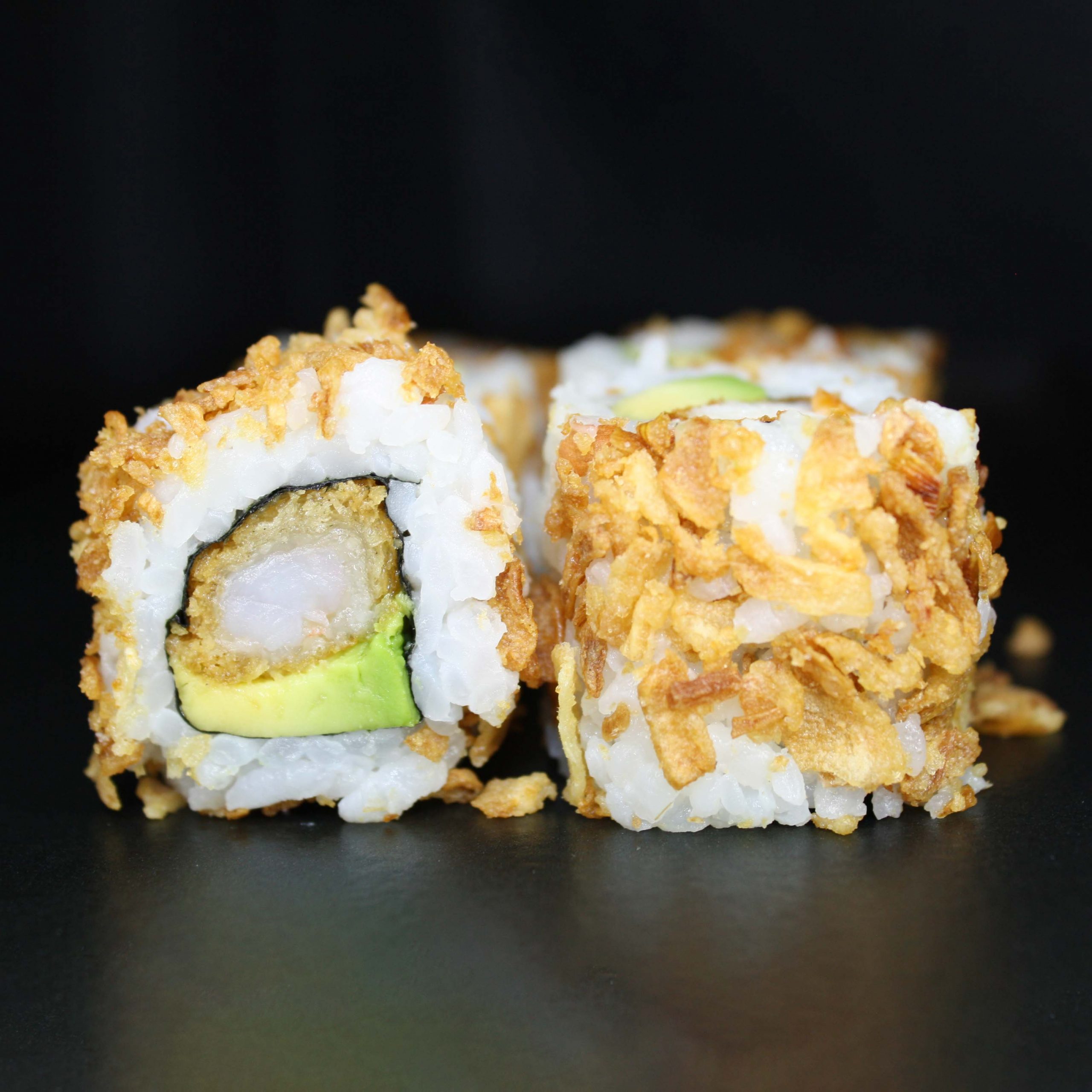 California base, Spicy mayo, Eel sauce, Fried onions or panko
