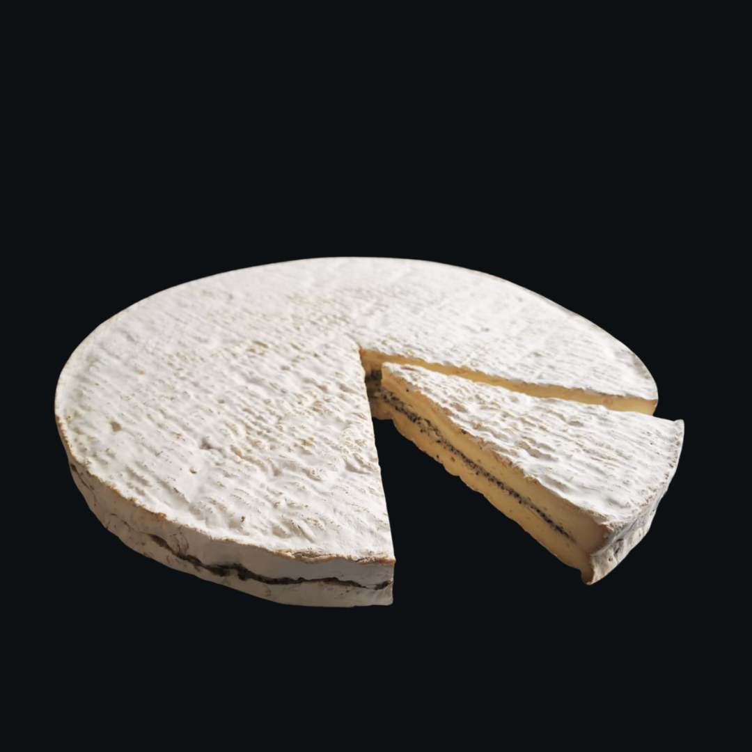 Ce Brie est fourré à la truffe d'été (Tuber estivum 3%) et à l’huile d’olive aromatisée à la truffe. Affiné 28 jours, i…