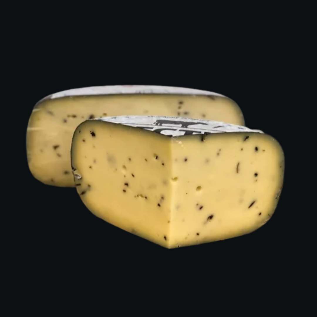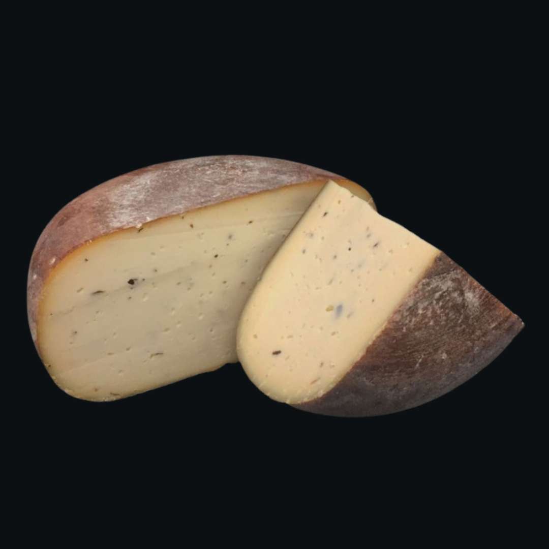 Fromage hollandais au lait cru de vache, il offre une une pâte jeune et souple agréablement parfumée de couleur crème à jaune. La pâte est parsemée de nombreux éclats de truffes.