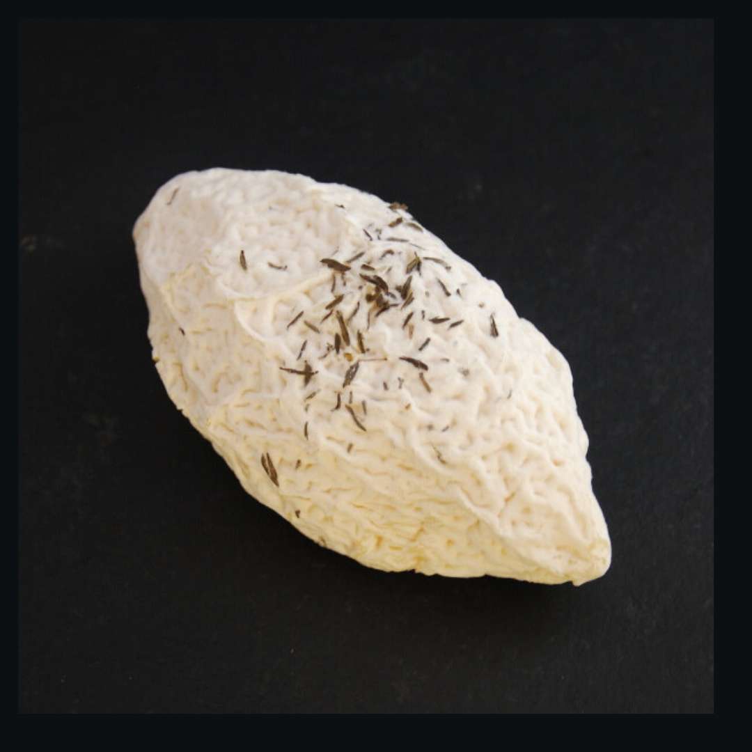 Fromage enrobé de fleurs sauvages comestibles : mauve, bleuet, souci, fraise, rose, foin, pissenlit…Son goût est doux,…